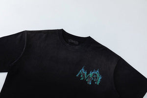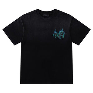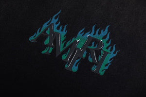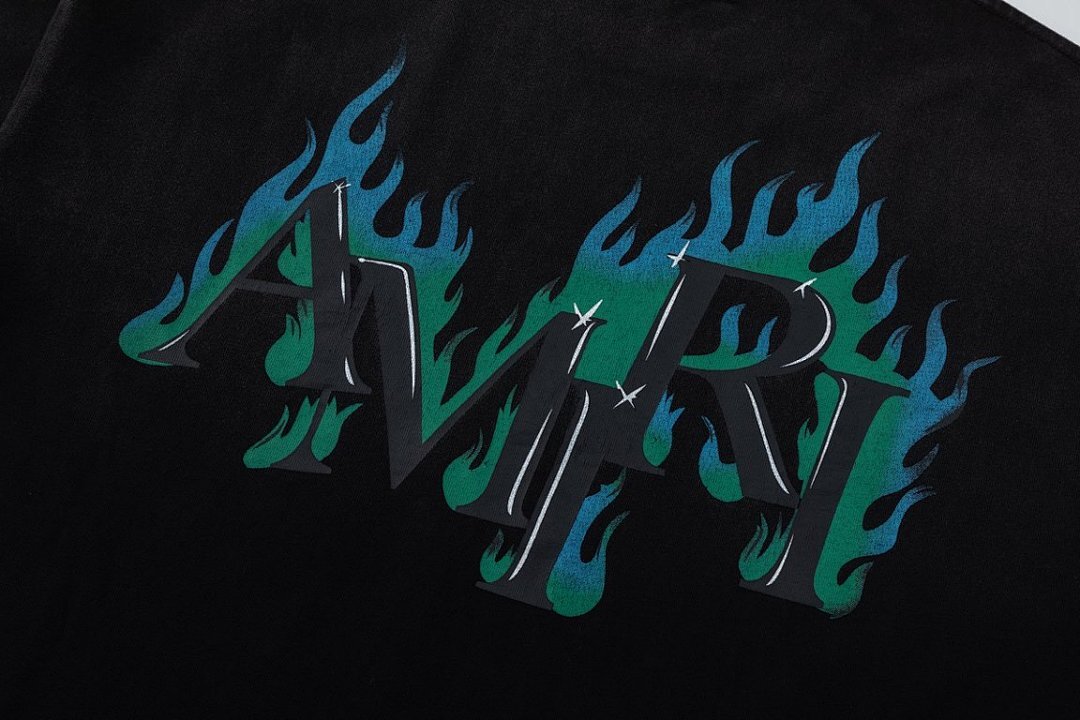 Pre-Spring 2026 channels icons of the road with motorcycle graphics reminiscent of past eras. The Crystal AMIRI Flames Oversized Tee is designed in a relaxed fit and illustrated with crystals and a seasonal logo graphic.