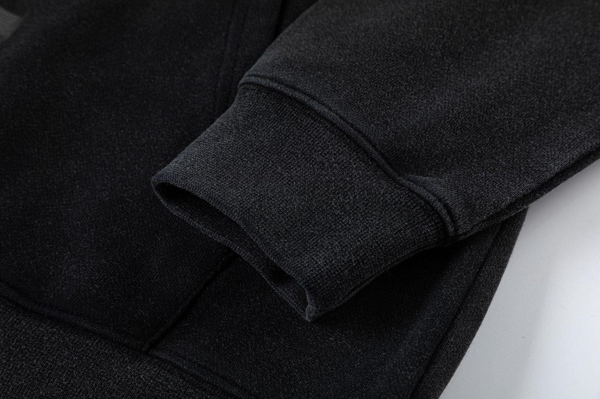 - Ribbed cuffs and hem