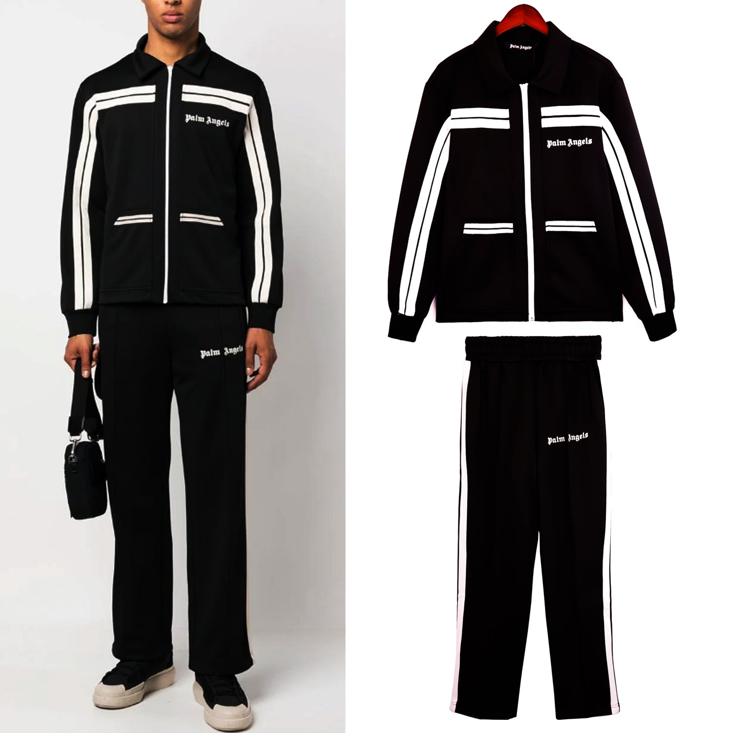 Palm Angels' track jacket is decorated with contrasting white stripes that lend a sporty feel. This monochrome piece features a matching tonal logo at the chest.