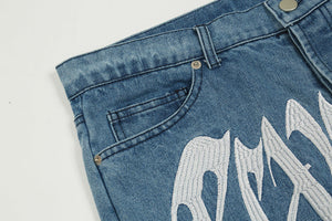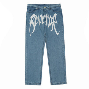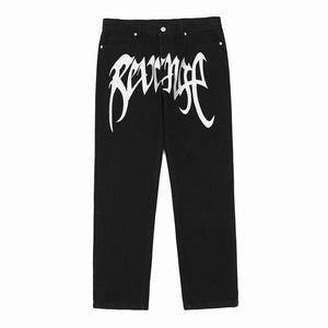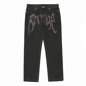 Revenge Embroidered Logo Trousers Mid Rise Jeans
