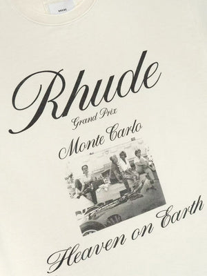 Custom-fit vintage wash cotton short sleeve tee-shirt with Rhude Bordeaux Wine graphics printed at front chest and back. 100% COTTON