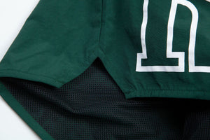 Plain-woven nylon shorts in red. Mid-rise. Four-pocket styling. Drawstring in yellow at elasticized waistband. Logo printed in white at front legs. Satin lining in black. Logo-engraved silver-tone hardware.